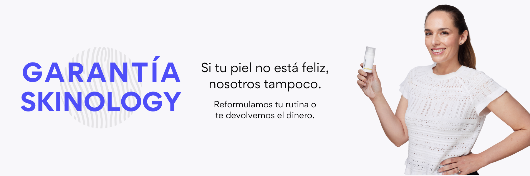 En Skinology queremos que te guste tu rutina tanto como tu piel. Por eso creamos la garantía Skinology: si tu piel no está feliz, nosotros tampoco.